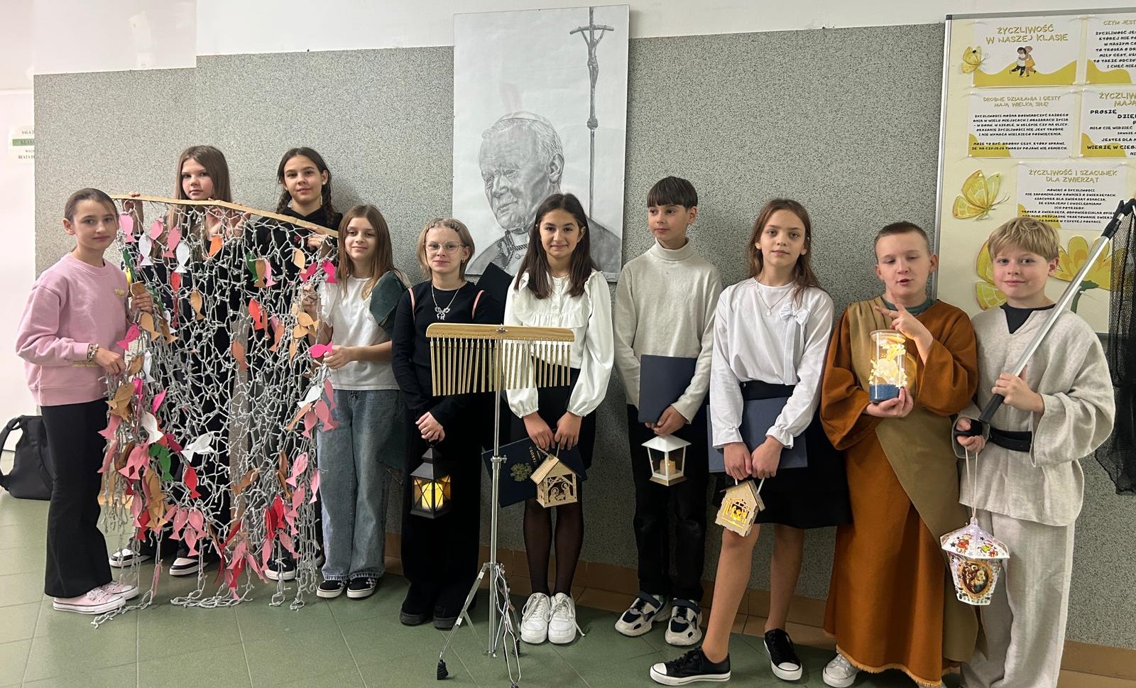 Z okazji Andrzejek uczniowie klasy 5 przygotowali wyjątkową niespodziankę dla całej społeczności szkolnej. Piątoklasiści przedstawili krótką inscenizację poświęconą św. Andrzejowi, która wprowadziła wszystkich w nastrój zadumy, refleksji oraz świątecznej atmosfery tego dnia.