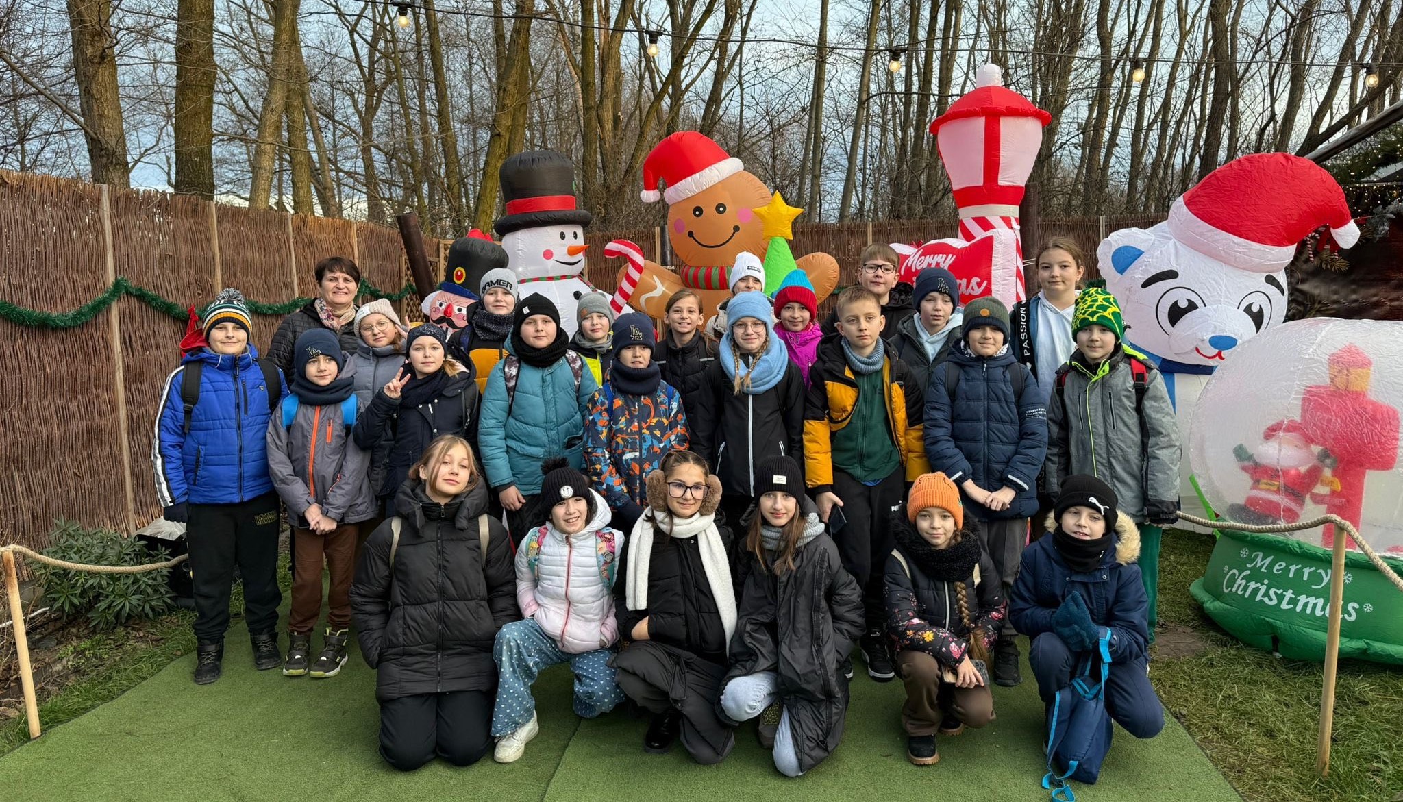 17 grudnia br. klasa 4 i 5 odwiedziła Wioskę Mikołaja w Bratkowicach. Dzieci miały okazję karmić urocze zwierzęta – lamy, owieczki i osiołka, a także spotkać samego Świętego Mikołaja wraz z jego elfami. Nie zabrakło słodkiego poczęstunku oraz wyjątkowych chwil przy malowaniu pierniczków i popijaniu gorącej czekolady.