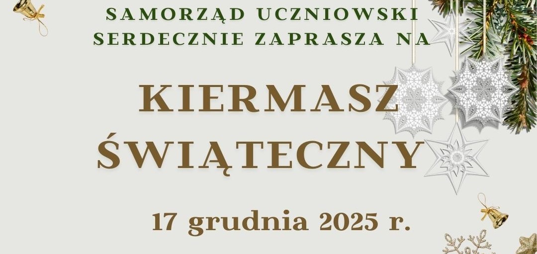 17 grudnia br. w naszej szkole odbędzie się Świąteczny Kiermasz, na który serdecznie zaprasza Samorząd Uczniowski