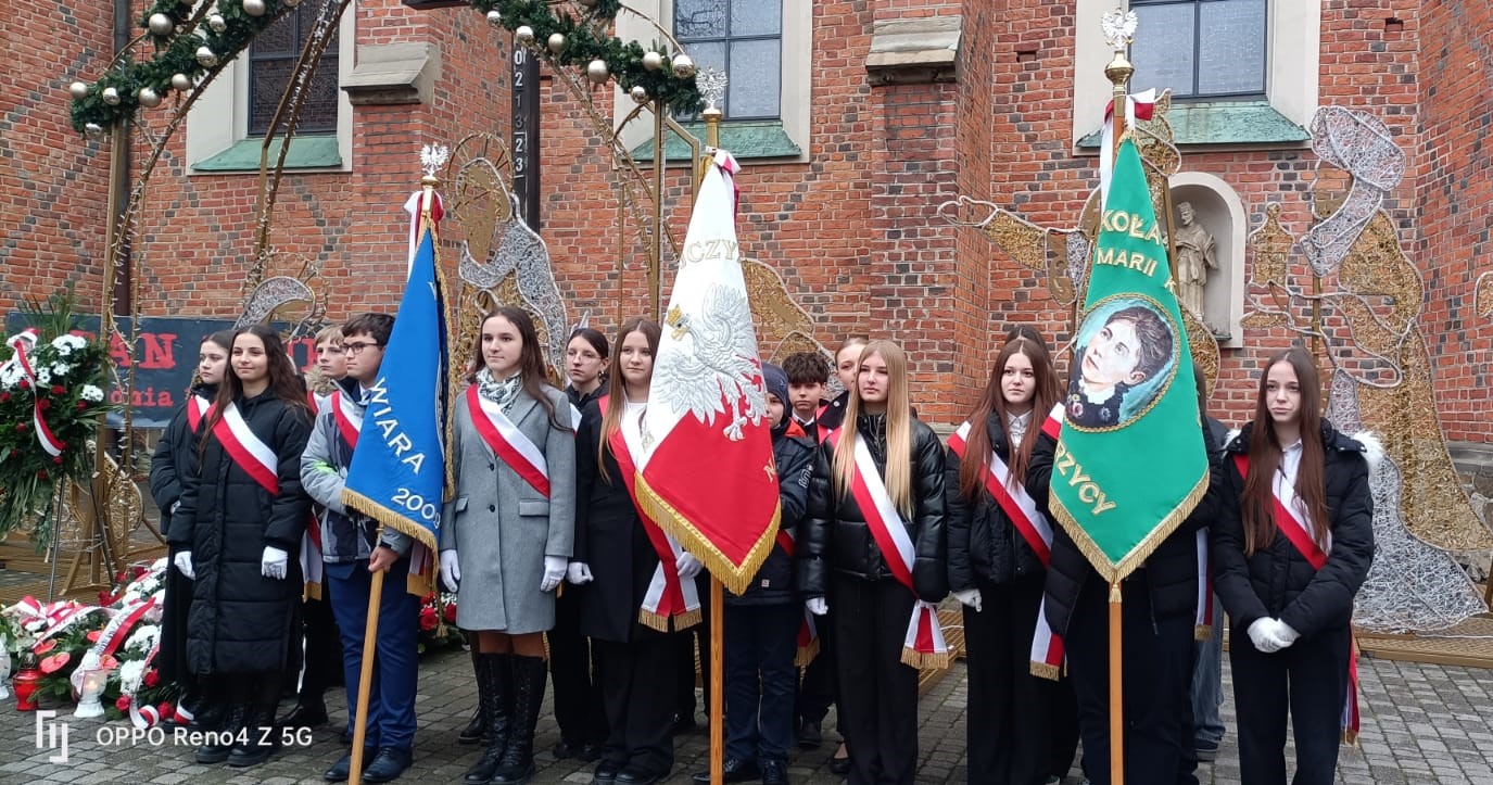 Jak co roku, do udziału zaproszono między innymi delegacje z pocztami sztandarowymi ze szkół z Gminy Iwierzyce. Naszą szkołę reprezentował poczet sztandarowy w składzie: chorąży- Jakub Gredys, asysta – Zuzanna Dziecic i Sabina Ziobro oraz poczet zastępczy: Szymon Ciebiera, Julia Kopala i Aleksandra Suchy pod opieką pani Ilony Dulli.
